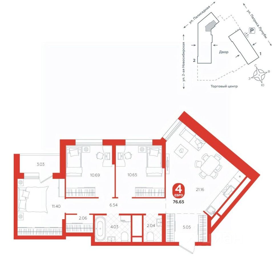 Квартира находится в ЖК ''Бодровский'' от федерального застройщика ''Паритет Девелопмент''. Это жилой комплекс комфорт-класса с современной архитектурой, расположенный в Екатеринбурге в районе улиц Патриса Лумумбы и 2-й Новосибирской. Добраться от него до центра города можно всего за 25 минут, дорога до ЕКАДа займет 12 минут. В окружении жилого комплекса есть шесть детских садов, пять школ, три больших парка, пять спорткомплексов, в том числе курортный комплекс Уктус. Квартал состоит из двух секций переменной этажности (от 14 до 24 этажей) и подземного паркинга с кладовыми, к которым можно будет спуститься на лифте. На первых этажах предусмотрены коммерческие помещения: жители смогут сделать маникюр, воспользоваться услугами ателье, выпить кофе с круассаном, не покидая своего района. Ввод в эксплуатацию в III кв. 2027 года. Территория комплекса огорожена от машин и посторонних людей. Озеленение с многолетними растениями и деревьями создает ощущение близости к природе. Двор наполнен всем необходимым: песочницы и качели для самых маленьких, интерактивная башня для детей постарше, воркаут-зона и места для отдыха. На всей территории реализована безбарьерная среда. В парадных выполнен авторский ремонт. За счет панорамного остекления и 4-метровых потолков там всегда много естественного света. Предусмотрены колясочные с местами для хранения спортинвентаря и креплениями для велосипедов. В проекте представлены студии, классические одно- и двухкомнатные варианты, а также двух-, трех- и четырехкомнатные квартиры в евроформате площадью от 25,32 до 76,65. Все планировки — функциональные и подходящие новоселам как с детьми, так и без них. Есть варианты с лоджиями, где можно организовать дополнительное пространство для отдыха, спорта или работы, а еще квартиры с мастер-спальней, гардеробной, двумя санузлами. В каждой предусмотрена вытяжная вентиляция с естественным побуждением, счетчики с телеметрией и корзины для кондиционеров. Характеристики квартиры: этаж - 3 количество комнат - 4 номер помещения - 159 площадь квартиры - 76,65 кв.м Чтобы сэкономить время и деньги, можно приобрести квартиру сразу с ремонтом от застройщика. На выбор 3 конфигурации: базовый, с кухонным гарнитуром, с кухонным гарнитуром и другой мебелью - в светлом и темном оттенках. Ремонт можно включить в ипотеку.
