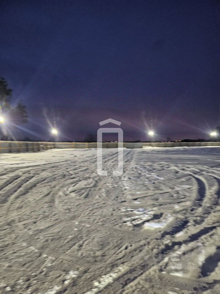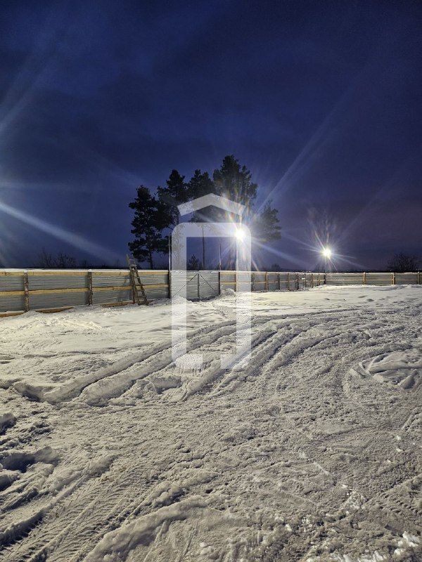 Ровный участок без построек, забор и освещение по всему периметру.
