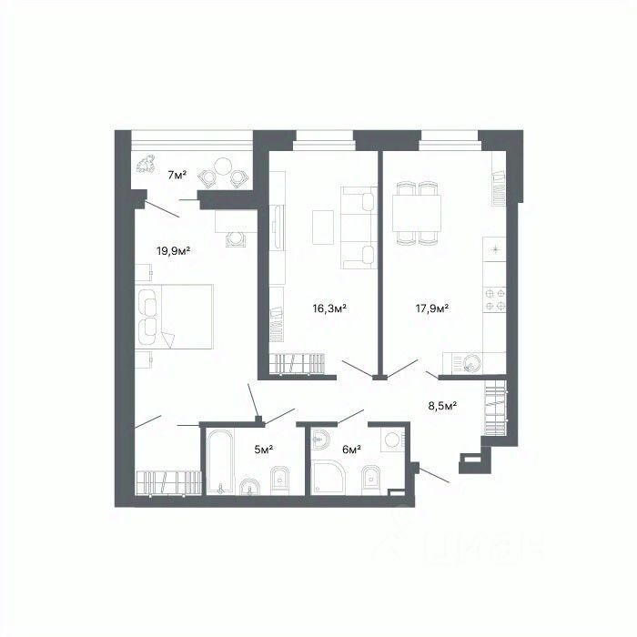 Общая площадь70,9 м2