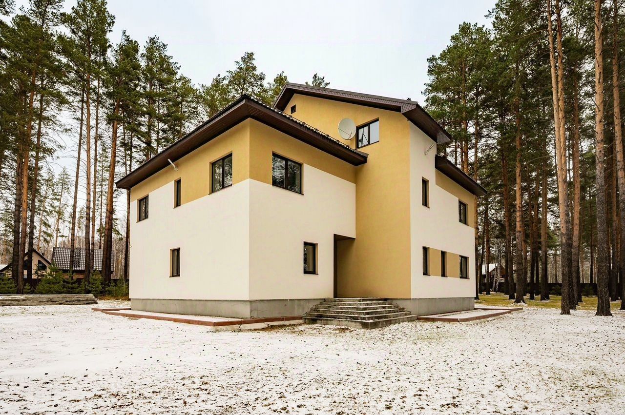 Продаётся дом, просторный хозяйственно гостевой коттедж с тремя гаражными боксами, два летних дома и готовый универсальный фундамент на едином земельном участке площадью 75 соток. Основной Дом: площадь 492,5 м2, года постройки — 2017, готовность — под чистовую отделку, есть дизайн-проект, материал стен — армированный пеноблок, фундамент — железобетон монолит со сваями, кровля — металлочерепица, высота потолков — 3 м, электричество — 380, пластиковые окна, 7 комнат, камин, 2 балкона, веранда, 3 санузла, локальная канализация, скважина, газ. Фотографии интерьера — по запросу. Хозяйственно-Гостевой Коттедж: площадь 341,2 м2, полностью готов к проживанию с котельной, электрощитовой и кладовкой. Материал стен — армированный пеноблок, фундамент — железобетон монолит со сваями, кровля — металлочерепица, высота потолков — 3 м, пластиковые окна, полы — паркетная доска, керамогранит, 2 санузла, электричество — 380, локальная канализация, скважина, газ, гараж — встроенные 3 бокса, один из них с мойкой, размер (м) 8х14х3,5, пол гаража — керамическая плитка. Два Летних Дома: площадь каждого 23,1 м2, два этажа. Универсальный Фундамент: размер (м) — 7,5х12,5, можно построить спа-зону или ещё один дом. Участок огорожен металлическим забором, на территории — сосновый лес, грибы, ягоды, подъезд — асфальтированная дорога. Один взрослый собственник. Быстрый выход на сделку. Рассматривается обмен на квартиры в Екатеринбурге с доплатой. Все фото и планировки — по запросу.