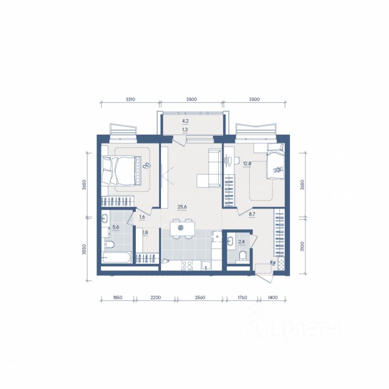 Продаётся 2-комнатная квартира в строящемся доме (Секция 2), срок сдачи: II-кв. 2028, общей площадью 72.9 кв.м., на 3 этаже. Новый жилой комплекс ''Форма'' от застройщика ''Форум-Групп'' расположен по адресу: г. Екатеринбург, улица Сони Морозовой.