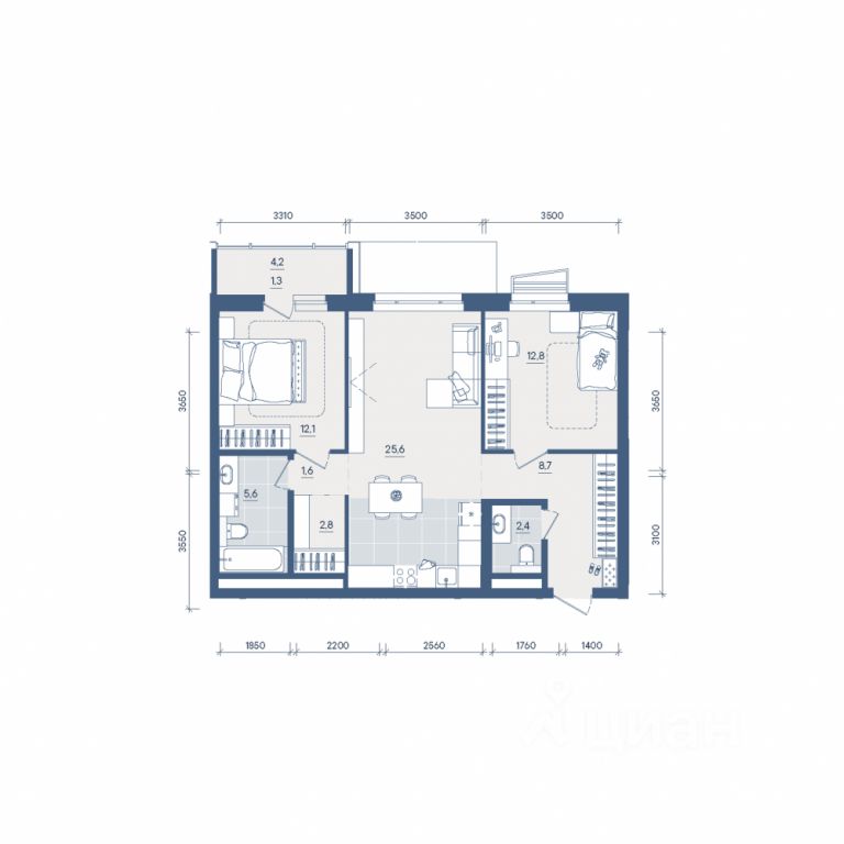 Продаётся 2-комнатная квартира в строящемся доме (Секция 2), срок сдачи: II-кв. 2028, общей площадью 72.9 кв.м., на 6 этаже. Новый жилой комплекс ''Форма'' от застройщика ''Форум-Групп'' расположен по адресу: г. Екатеринбург, улица Сони Морозовой.