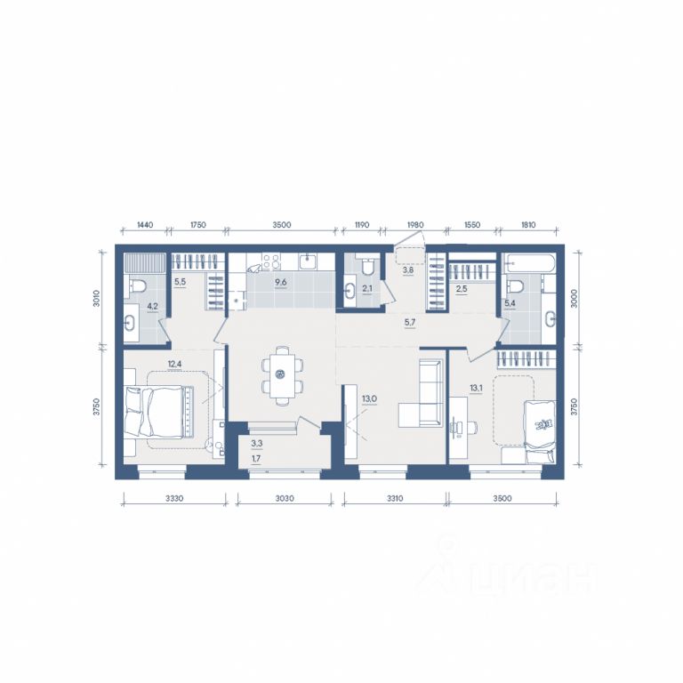 Продаётся 3-комнатная квартира в строящемся доме (Секция 2), срок сдачи: II-кв. 2028, общей площадью 89 кв.м., на 2 этаже. Новый жилой комплекс ''Форма'' от застройщика ''Форум-Групп'' расположен по адресу: г. Екатеринбург, улица Сони Морозовой.
