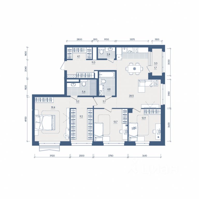 Продаётся 3-комнатная квартира в строящемся доме (Секция 2), срок сдачи: II-кв. 2028, общей площадью 117.4 кв.м., на 1 этаже. Новый жилой комплекс ''Форма'' от застройщика ''Форум-Групп'' расположен по адресу: г. Екатеринбург, улица Сони Морозовой.