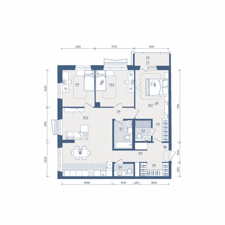 Продаётся 3-комнатная квартира в строящемся доме (Секция 2), срок сдачи: II-кв. 2028, общей площадью 104.1 кв.м., на 13 этаже. Новый жилой комплекс ''Форма'' от застройщика ''Форум-Групп'' расположен по адресу: г. Екатеринбург, улица Сони Морозовой.