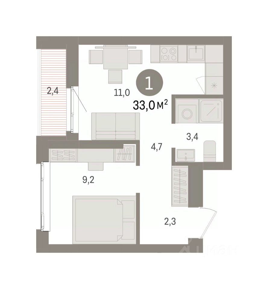Общая площадь33 м2