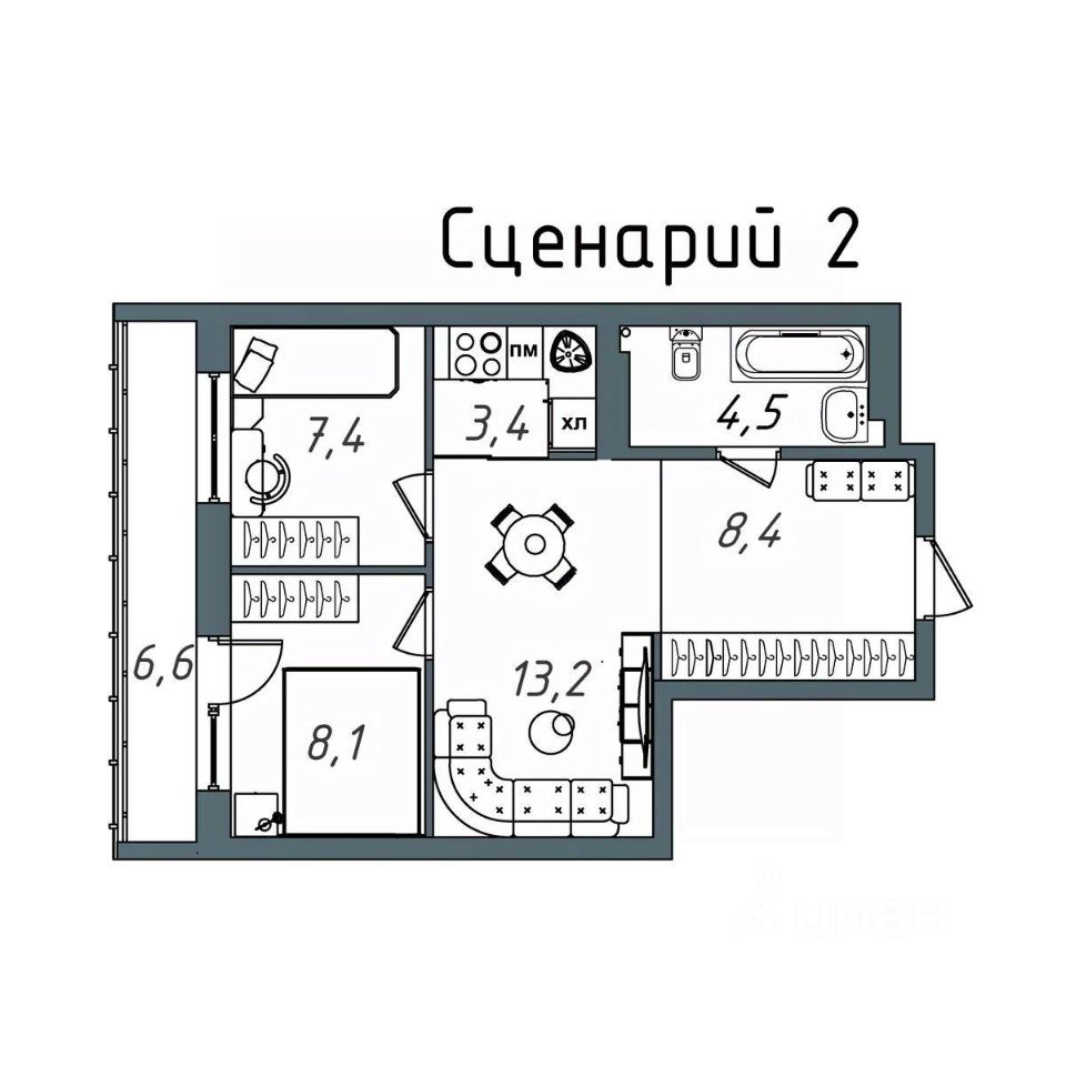 Общая площадь52,2 м2