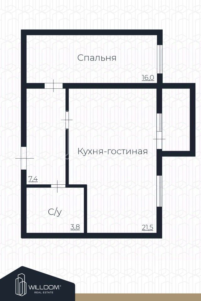 * Эргономичная планировка: кухня-гостиная 21,5 м2 с выходом на лоджию, просторная спальня 16 м2, ванная, прихожая с нишей под шкаф-купе. Идеально подойдёт для одного человека, пары или молодой семьи с ребёнком.