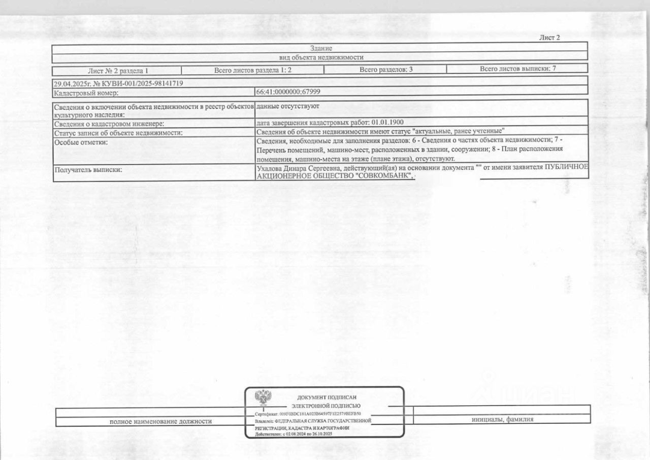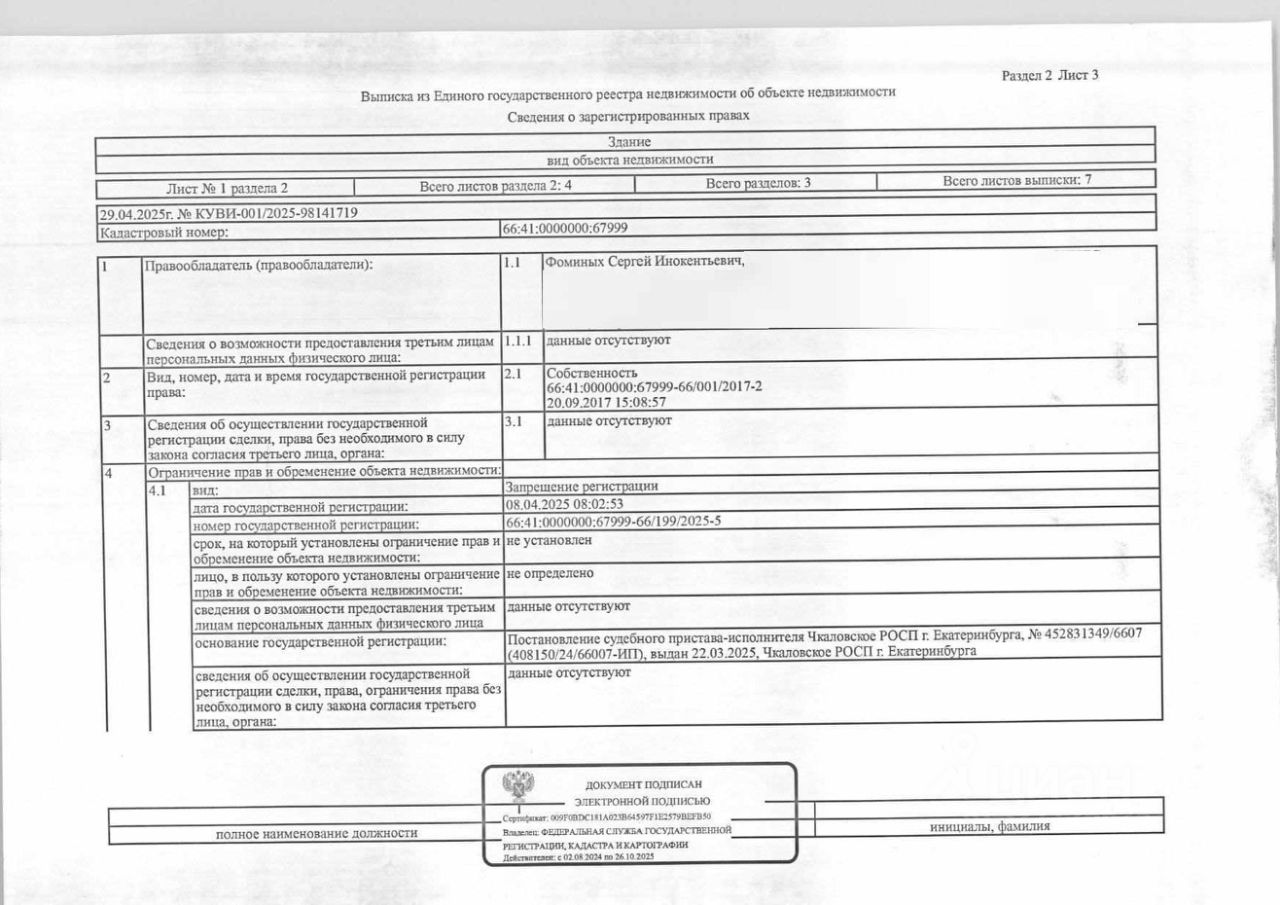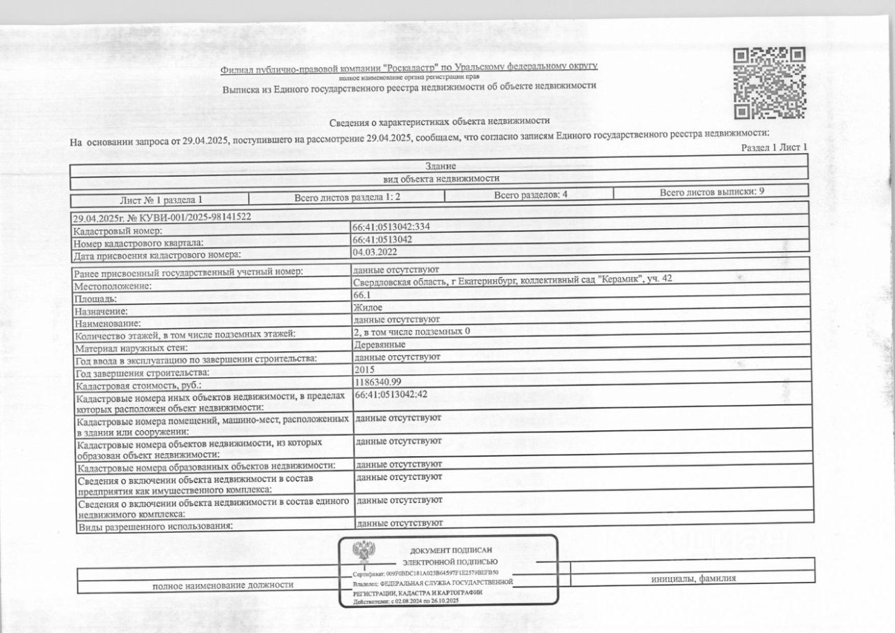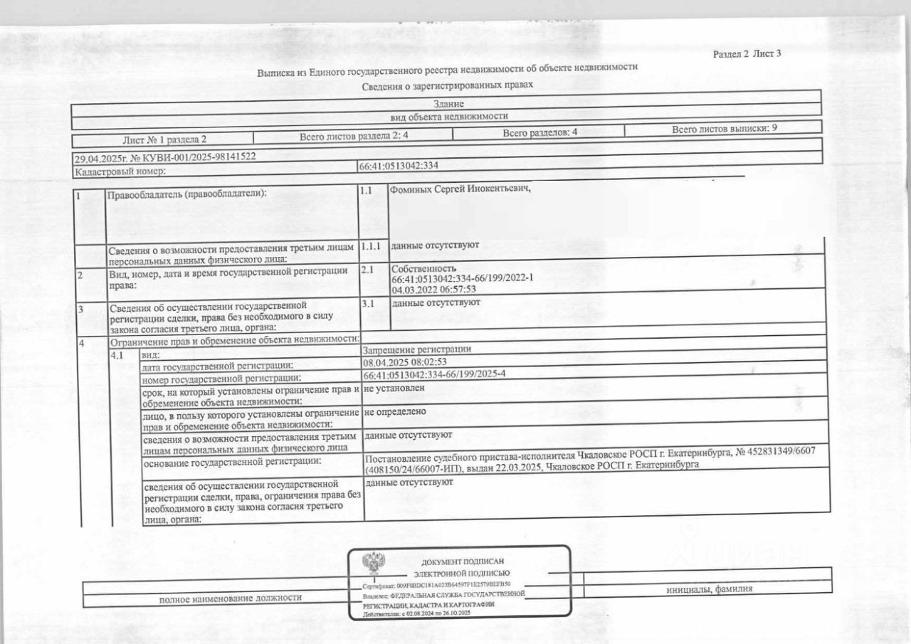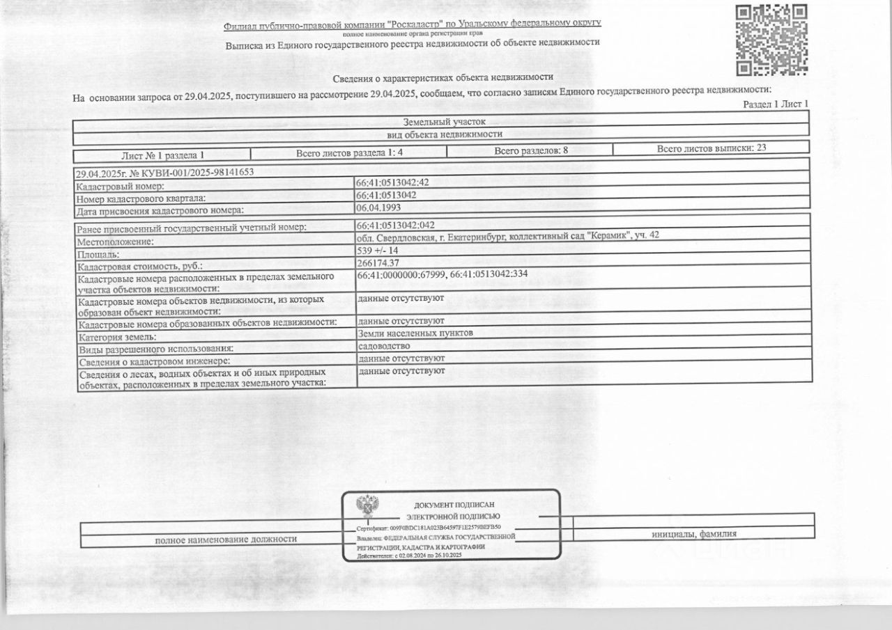 Должник: Фоминых С.И., Собственник: Фоминых С.И. Лот: Здание (жилое), площадь 66,1 кв.м., кадастровый номер: 66:41:0513042:334, нежилое здание (жилое строение без права регистрации проживания, расположенное на садовом), площадь 30 кв.м., кадастровый номер: 66:41:0000000:67999, земельный участок (земли населенных пунктов, садоводство), площадь 539 кв.м., кадастровый номер: 66:41:0513042:42, г. Екатеринбург, коллективный сад ''Керамик'', уч. 42, н/ц: 2618000 р., з-к: 2618 р., код: 0014, рег. 07-1786/25