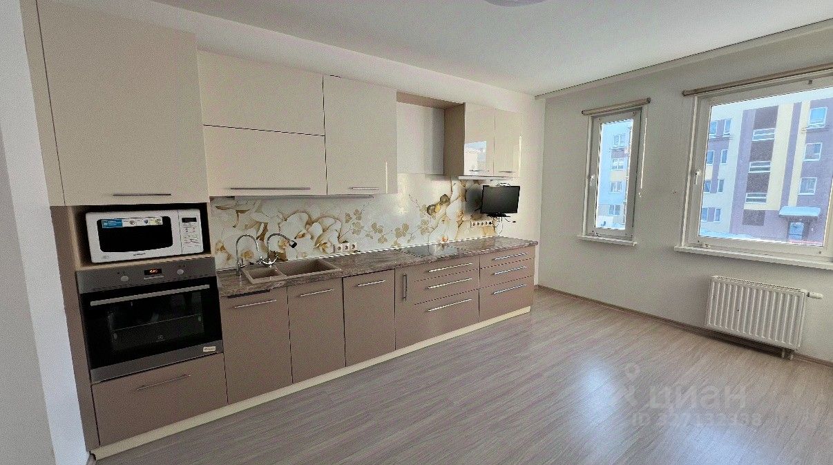 Покупателю останется кухонный гарнитур, варочная панель, большой шкаф-купе в коридоре. Ремонт от застройщика в хорошем состоянии.