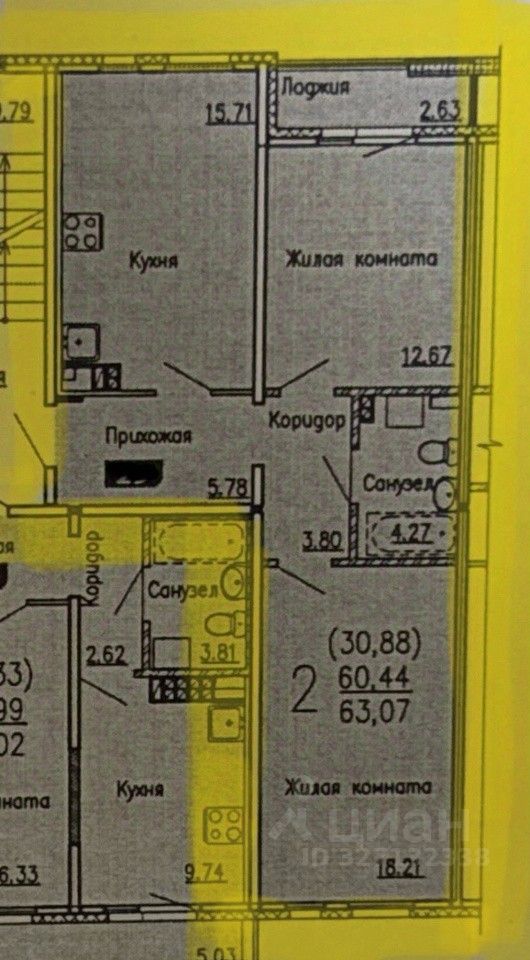 Большая , светлая двухкомнатная квартира в Мичуринском.
