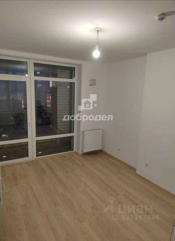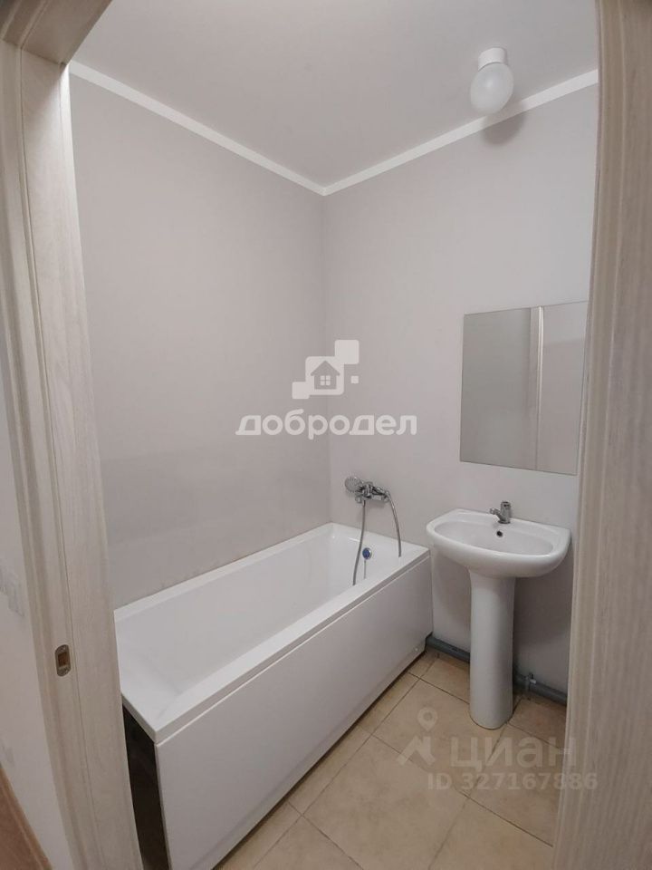 Квартира с ремонтом от застройщика, кухня гостиная с балконом и комната 13, 7 кв.м. В санузле установлена ванна.