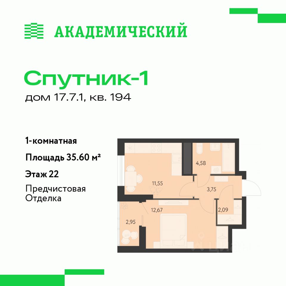 продам 1-к, Академика Ландау, 17.7.1 стр.5 803 800 ₽