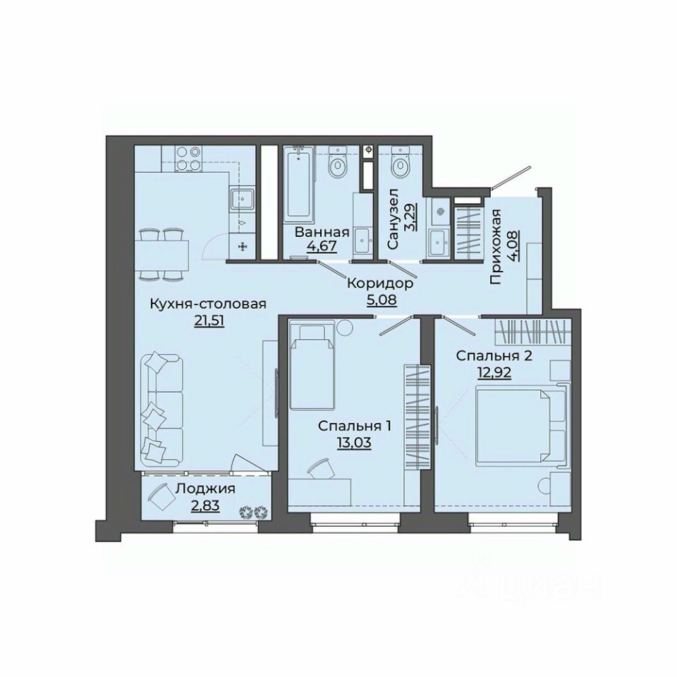 Общая площадь67,41 м2
