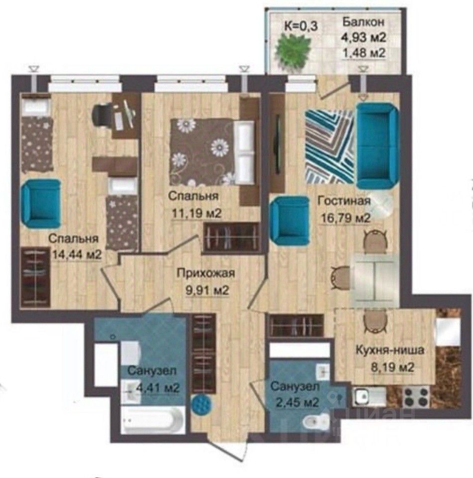 Просторная квартира в ЖК Квартет - идеально для комфортного проживания.