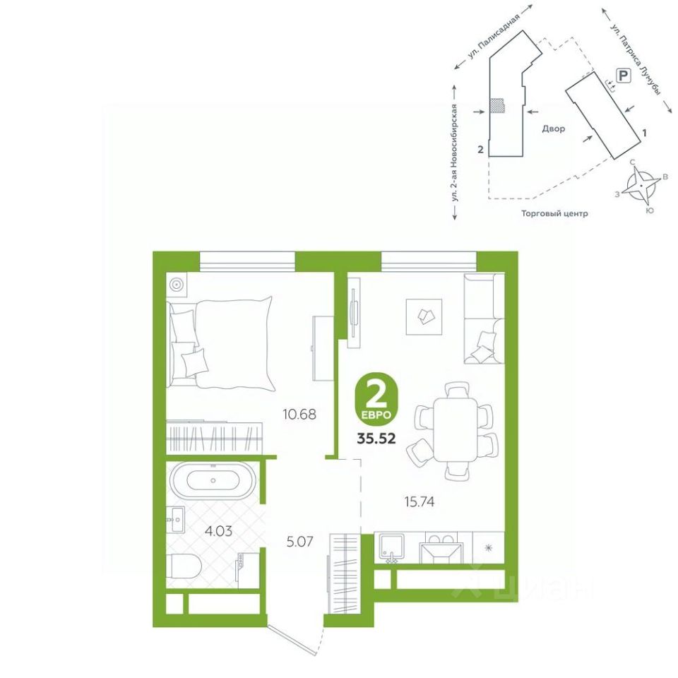 Квартира находится в ЖК ''Бодровский'' от федерального застройщика ''Паритет Девелопмент''. Это жилой комплекс комфорт-класса с современной архитектурой, расположенный в Екатеринбурге в районе улиц Патриса Лумумбы и 2-й Новосибирской. Добраться от него до центра города можно всего за 25 минут, дорога до ЕКАДа займет 12 минут. В окружении жилого комплекса есть шесть детских садов, пять школ, три больших парка, пять спорткомплексов, в том числе курортный комплекс Уктус. Квартал состоит из двух секций переменной этажности (от 14 до 24 этажей) и подземного паркинга с кладовыми, к которым можно будет спуститься на лифте. На первых этажах предусмотрены коммерческие помещения: жители смогут сделать маникюр, воспользоваться услугами ателье, выпить кофе с круассаном, не покидая своего района. Ввод в эксплуатацию в III кв. 2027 года. Территория комплекса огорожена от машин и посторонних людей. Озеленение с многолетними растениями и деревьями создает ощущение близости к природе. Двор наполнен всем необходимым: песочницы и качели для самых маленьких, интерактивная башня для детей постарше, воркаут-зона и места для отдыха. На всей территории реализована безбарьерная среда. В парадных выполнен авторский ремонт. За счет панорамного остекления и 4-метровых потолков там всегда много естественного света. Предусмотрены колясочные с местами для хранения спортинвентаря и креплениями для велосипедов. В проекте представлены студии, классические одно- и двухкомнатные варианты, а также двух-, трех- и четырехкомнатные квартиры в евроформате площадью от 25,32 до 76,65. Все планировки — функциональные и подходящие новоселам как с детьми, так и без них. Есть варианты с лоджиями, где можно организовать дополнительное пространство для отдыха, спорта или работы, а еще квартиры с мастер-спальней, гардеробной, двумя санузлами. В каждой предусмотрена вытяжная вентиляция с естественным побуждением, счетчики с телеметрией и корзины для кондиционеров. Характеристики квартиры: этаж - 5 количество комнат - 2 номер помещения - 182 площадь квартиры - 35,52 кв.м Чтобы сэкономить время и деньги, можно приобрести квартиру сразу с ремонтом от застройщика. На выбор 3 конфигурации: базовый, с кухонным гарнитуром, с кухонным гарнитуром и другой мебелью - в светлом и темном оттенках. Ремонт можно включить в ипотеку.