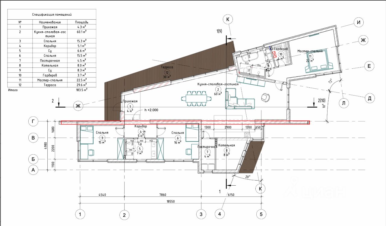 - кухню-гостиную-столовую 60,1 м² с выходом на открытую террасу,