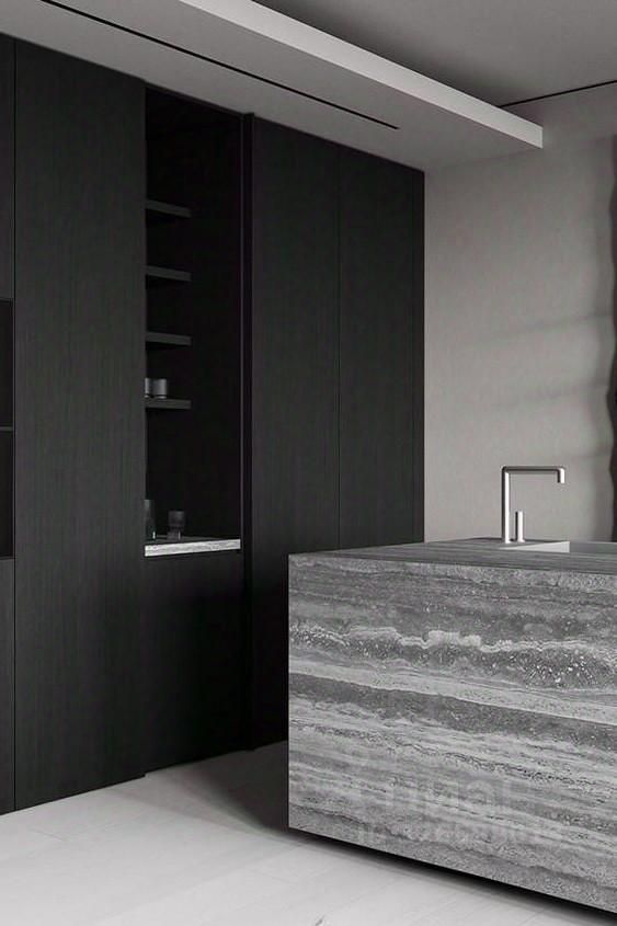 В меблировке используются натуральный шпон и камень, в отделке санузлов — крупноформатный керамогранит. В доме устанавливается вся необходимая бытовая техника. Во всех комнатах — теплые полы, а умная система сама поддерживает идеальный климат круглый год.