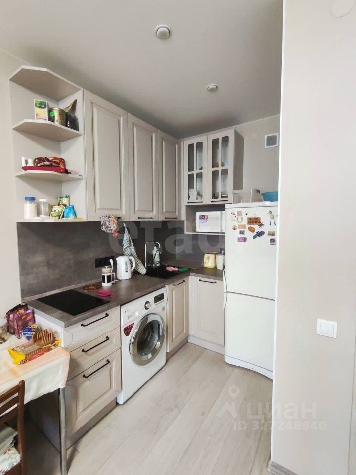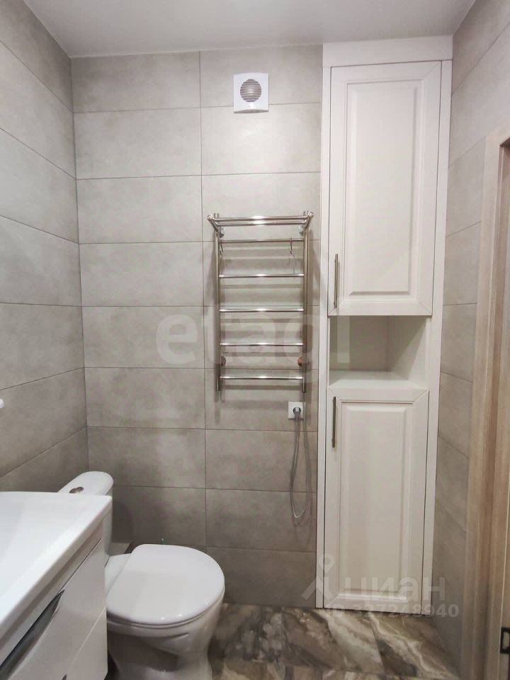 В санузле выполнена качественная отделка: — керамическая плитка на стенах — керамогранит на полу — встроенный шкаф от компании Любимая кухня