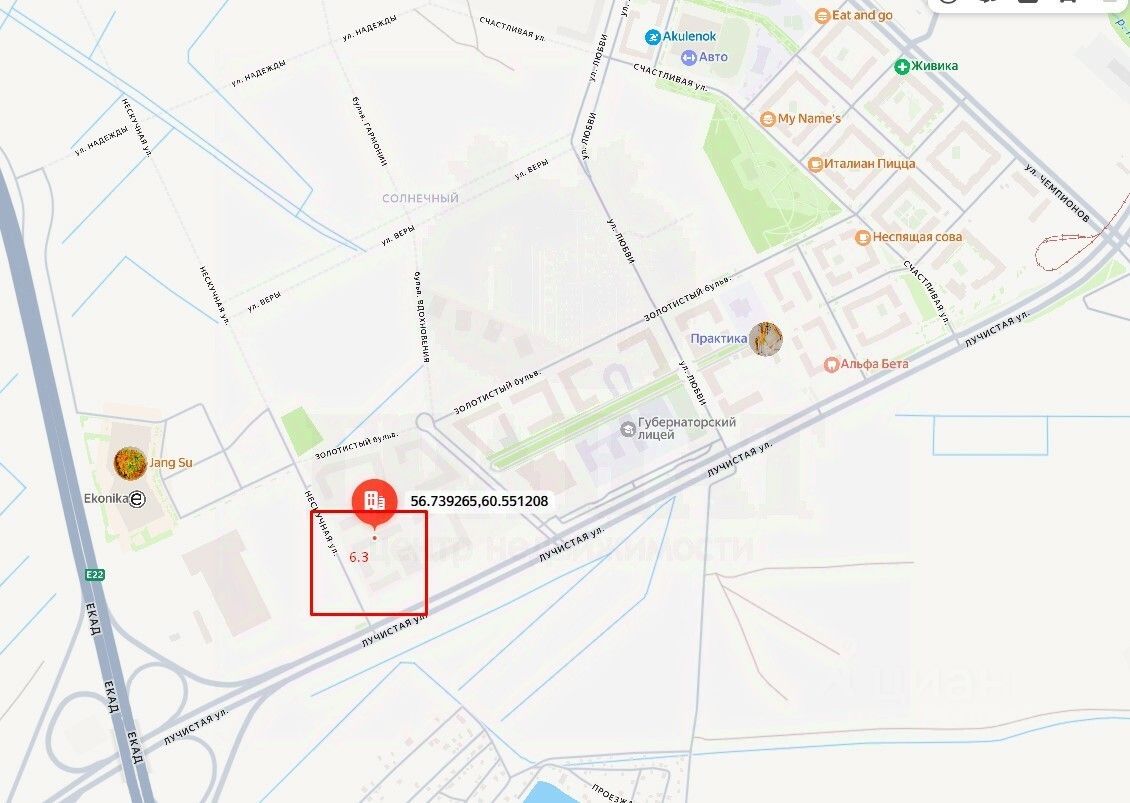 Транспорт: Квартира расположена в пешей доступности от конечной остановки трамвая. Удобные выезды на основные магистрали (4 направления) позволяют добраться до центра Екатеринбурга за 20-30 минут. В стратегических планах развития района - строительство станции метро.