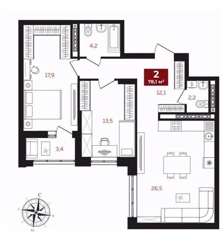 Эта светлая и видовая квартира расположена на 14 этаже. Окна выходят в закрытый двор. Секция Л. На этаже всего 3 квартиры. Высокие потолки - 2,9 м Просторная кухня-гостиная - 26,5 м2 2 комнаты - 18 и14м2 Вместительный коридор - 12 м2 2 сан узла Ремонт от застройщика под чистовую, выведена вся электрика. Подземный двухуровневый паркинг, мусоропровод в паркинге, что очень удобно! Бесплатная наземная парковка за шлагбаумом.
