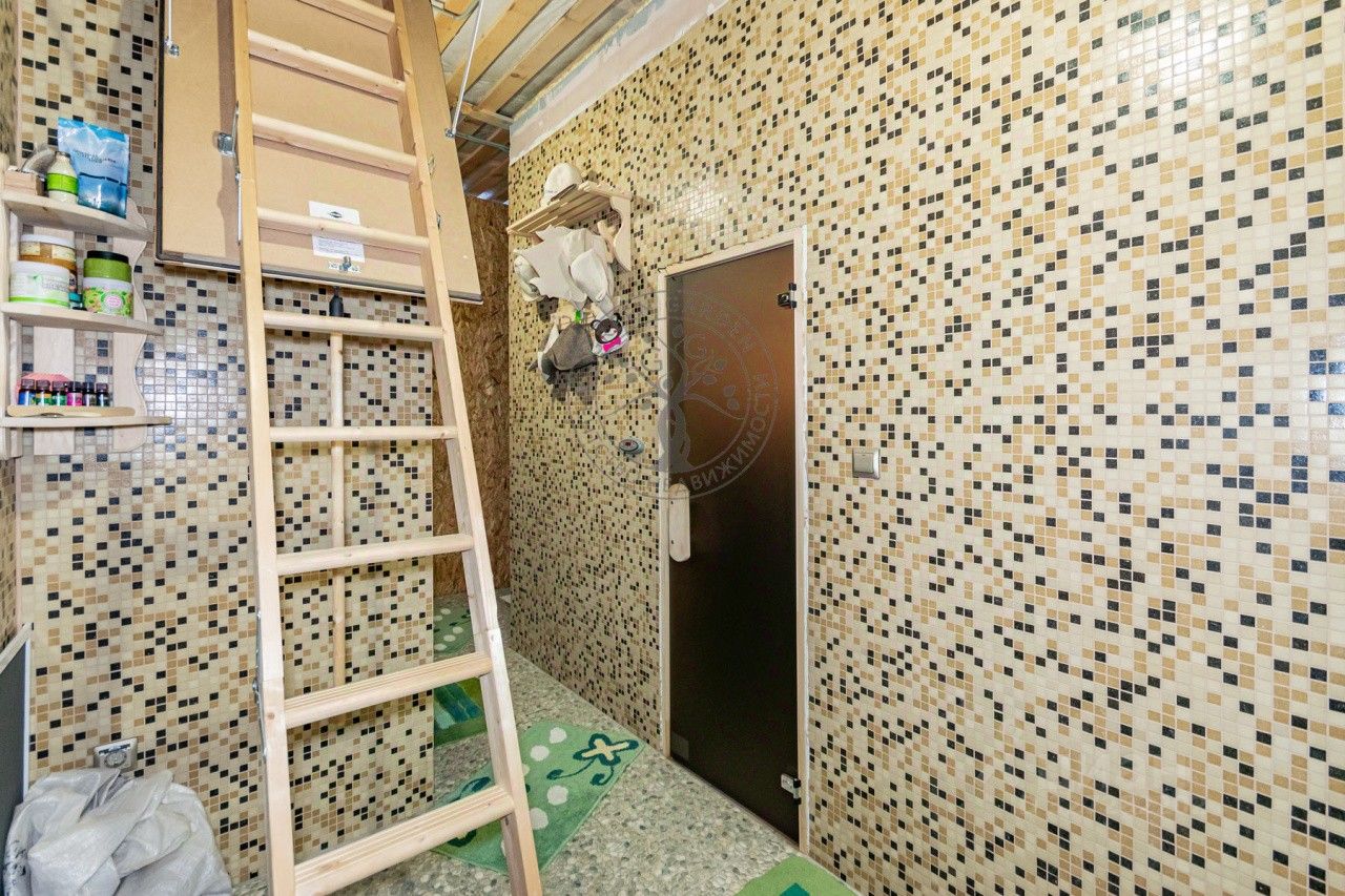 Общая информация: Участок: 951 м (ИЖС) Этажность дома: цоколь+2 этажа + мансарда +пристрой для бассейна +мансарда пристроя Материал постройки: 1 этаж- кирпич, 2 этаж - брус, весь дом обложен кирпичом с утеплением сэндвич-панелями и штукатуркой. Перекрытия между этажами - бетонные, между 2-м этажом и мансардой - деревянные на железных балках. Крыша - железные балки с двойным зимним утеплением. Цокольный этаж: гараж на 2 машины со смотровой ямой, мастерская, спортзал, хозяйственные комнаты со стеллажами, летняя кухня.