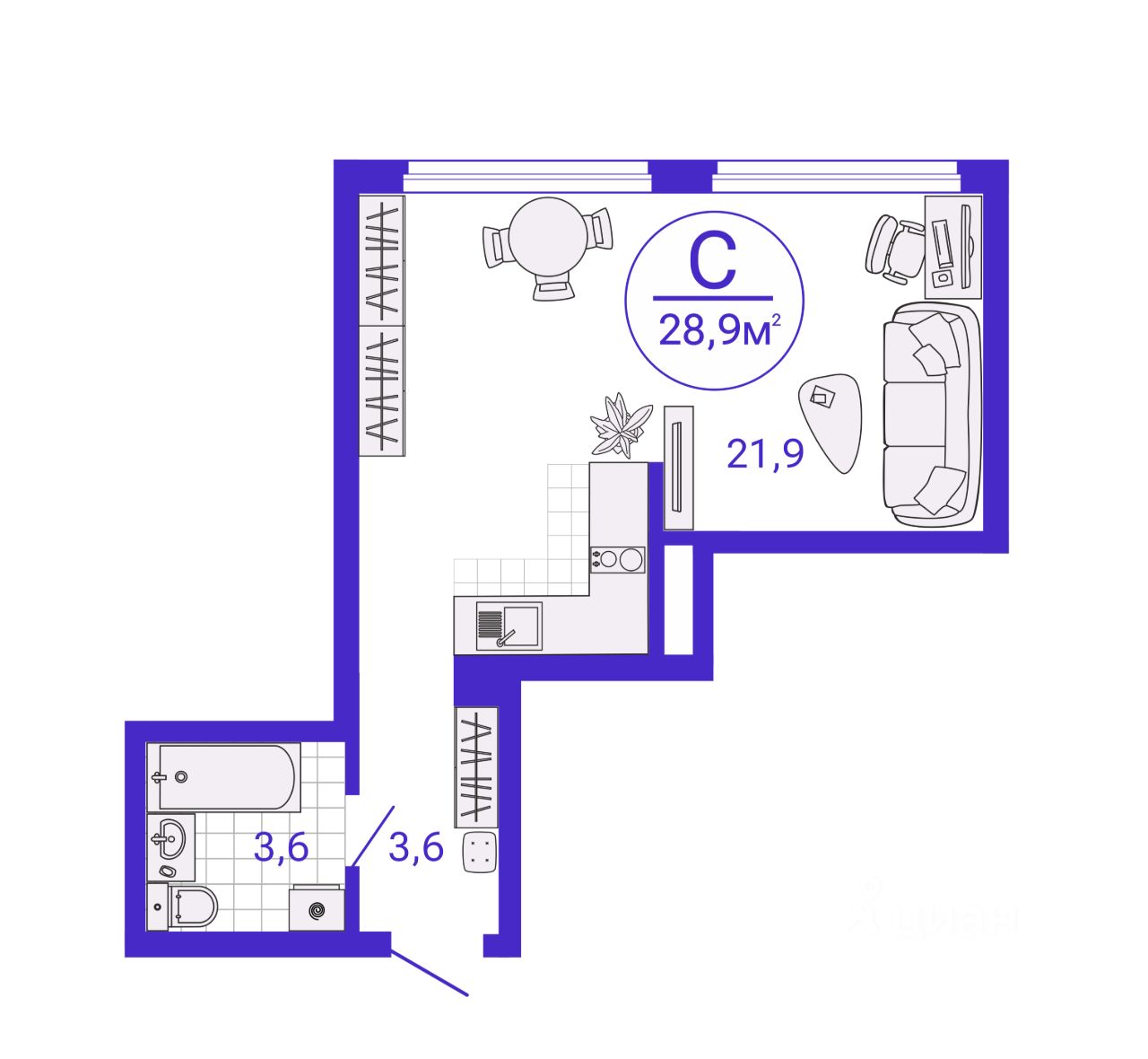 Общая площадь28,87 м2