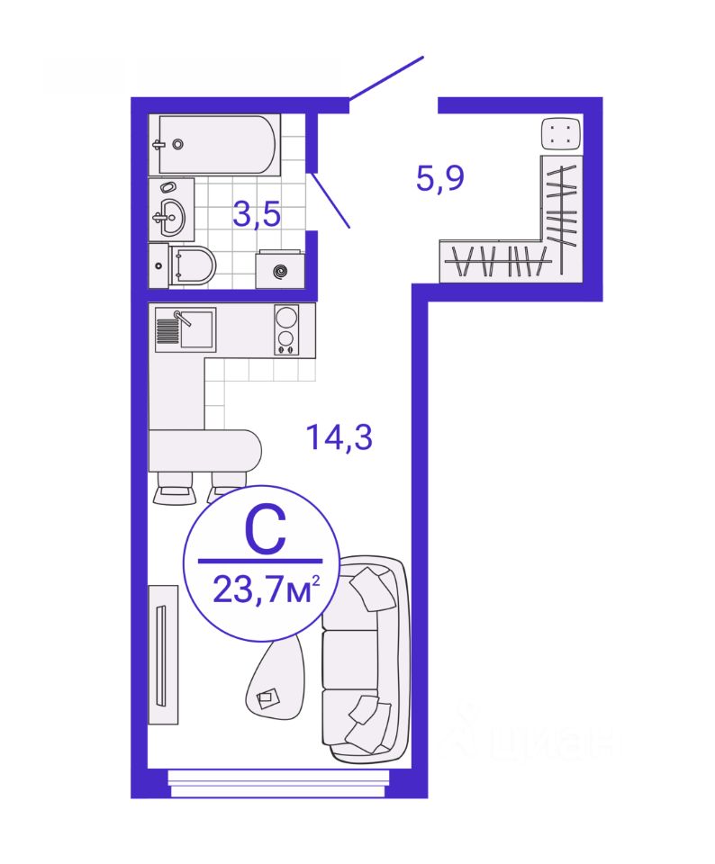 Общая площадь23,65 м2