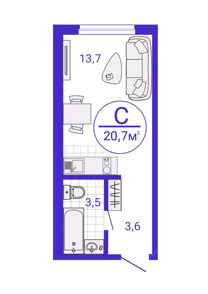 Общая площадь20,71 м2