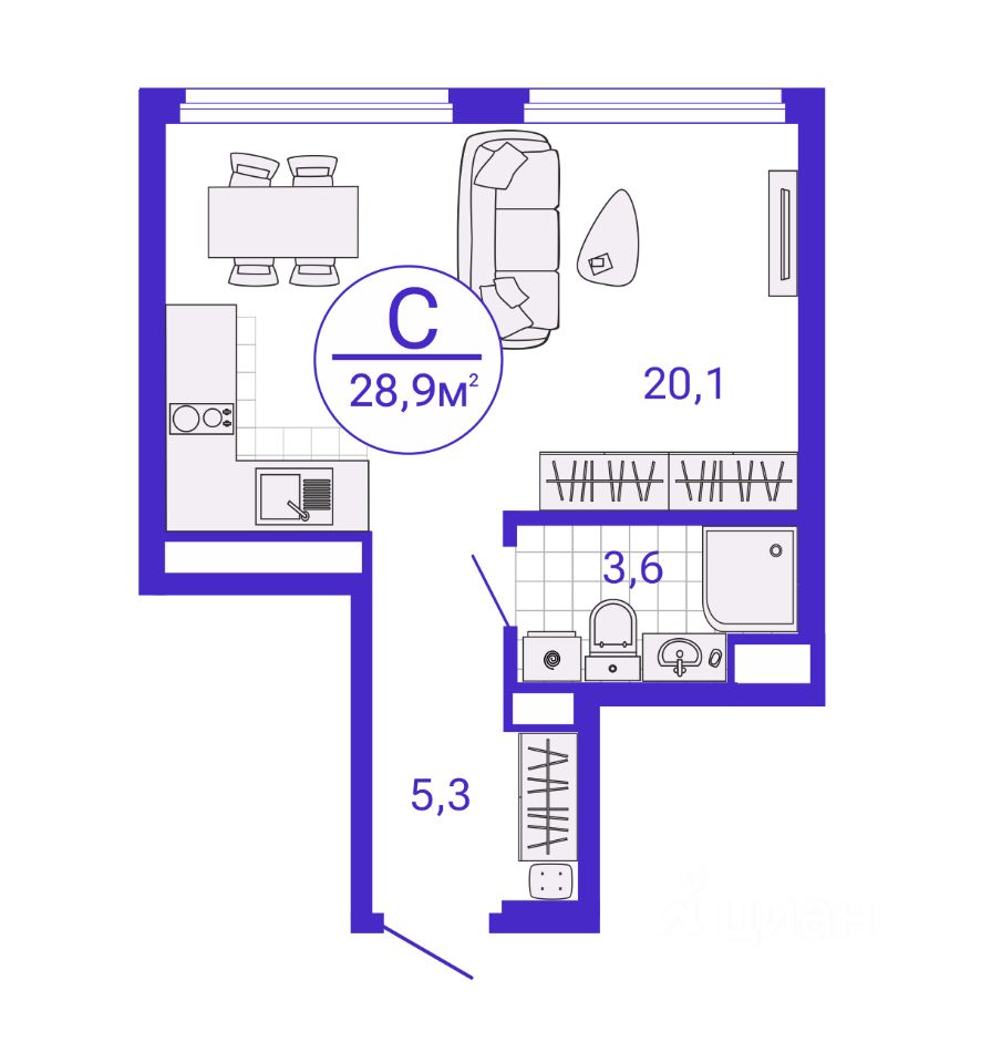 Общая площадь28,94 м2