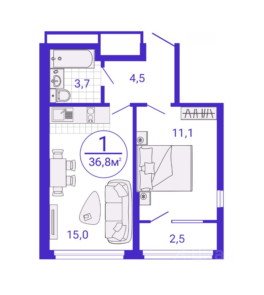 Общая площадь35,57 м2