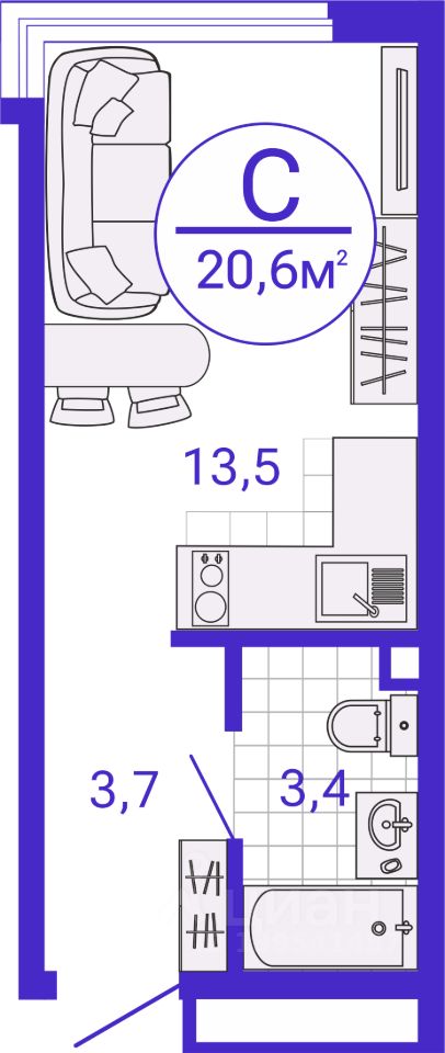 Общая площадь20,6 м2
