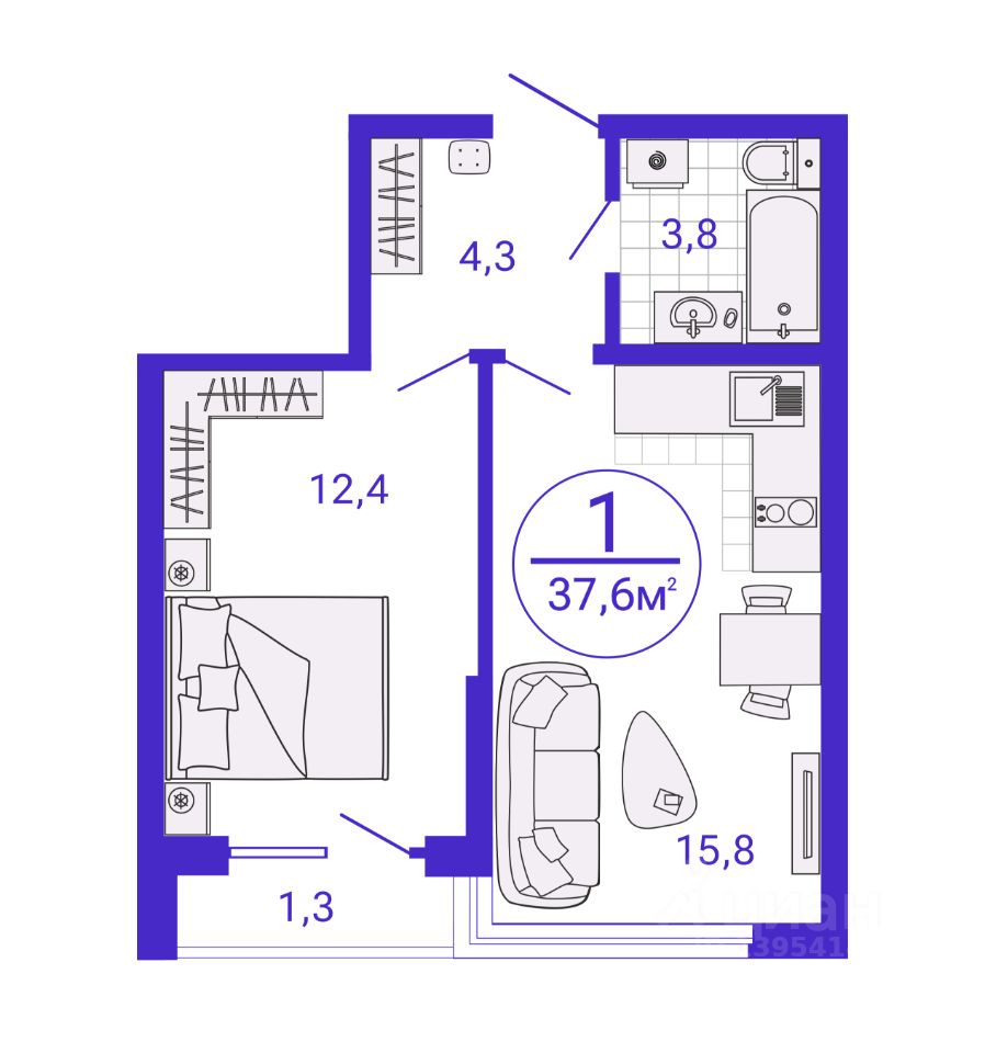 Общая площадь36,67 м2