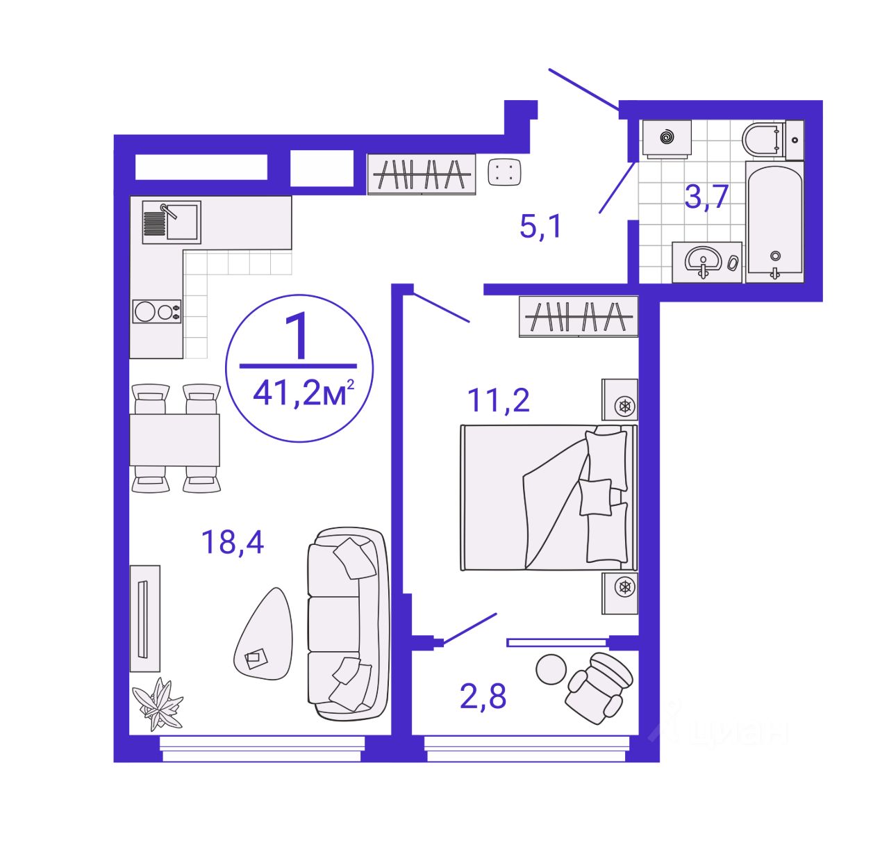 Общая площадь39,83 м2