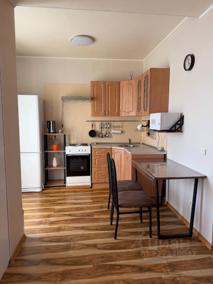 В квартире выполнен качественный евроремонт, в наличии вся необходимая мебель как в комнате, так и на кухне. На кухне установлены холодильник и плита, в комнате — удобный диван и шкаф. Ванная комната оборудована современной сантехникой и ванной. Также есть стиральная машина и телевизор, необходимая бытовая техника и всё для . Одним словом, квартира полностью готова к комфортному проживанию.