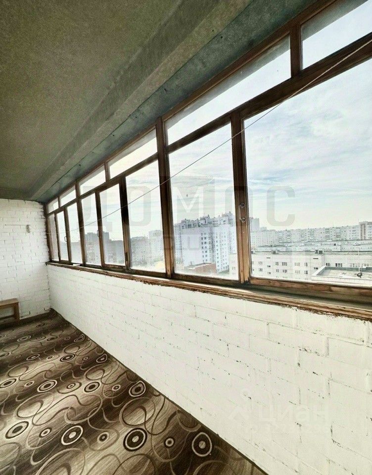 Очень большая закрытая лоджия с видом на двор и детскую площадку.