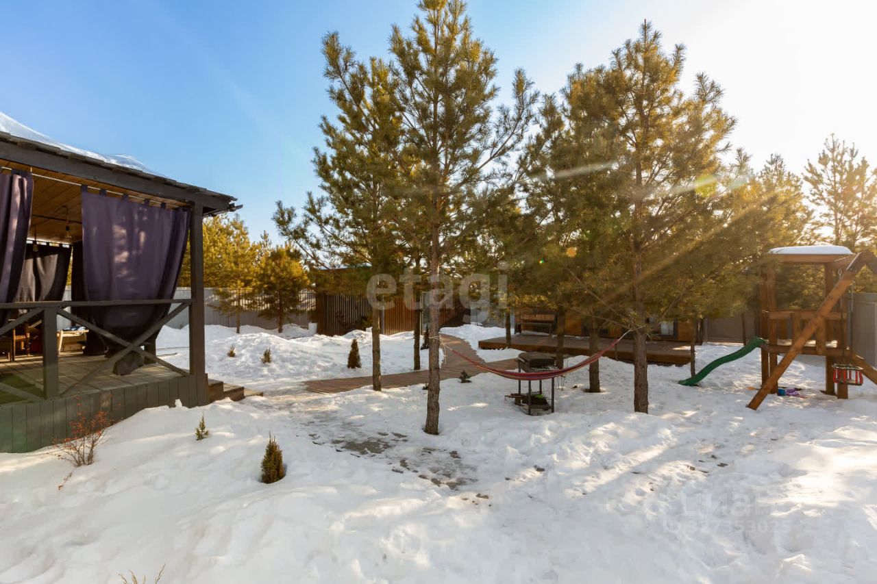 Территория участка с лоншафтным дизайонм, собственной баней, гаражом и детской площадкой.