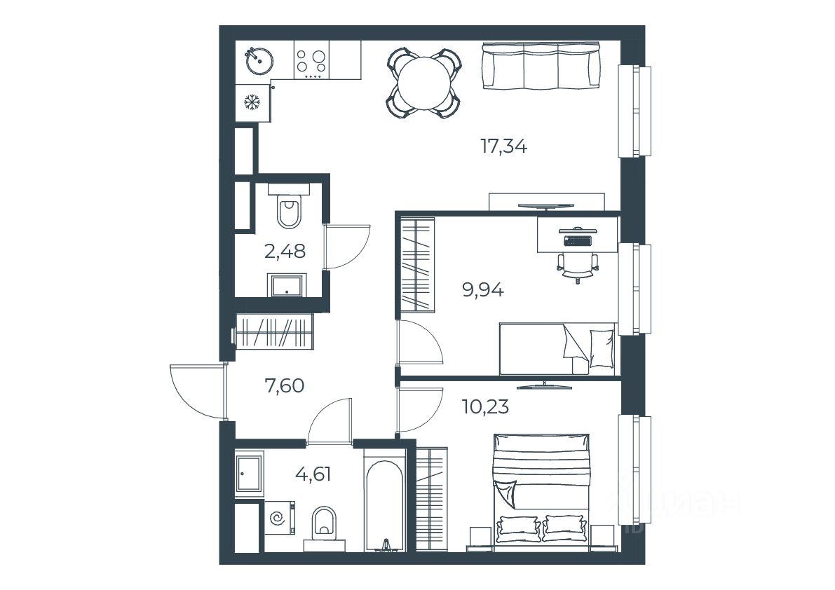 Общая площадь52,2 м2