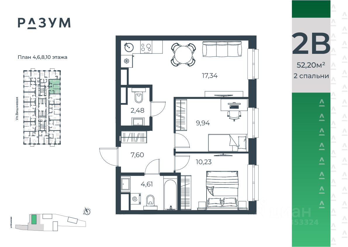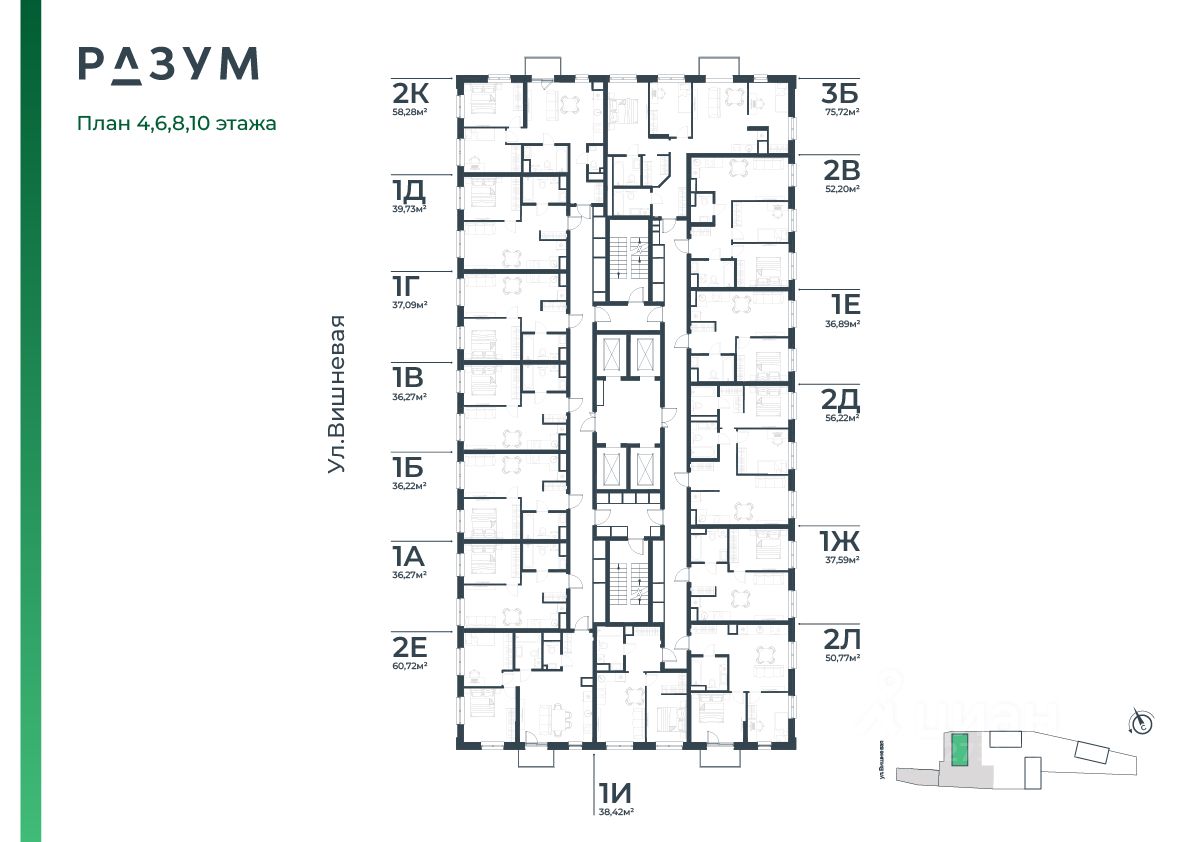 Застройщик - Специализированный застройщик «Разум на Вишневой», ООО. Проектная декларация опубликована на сайте наш.дом.рф