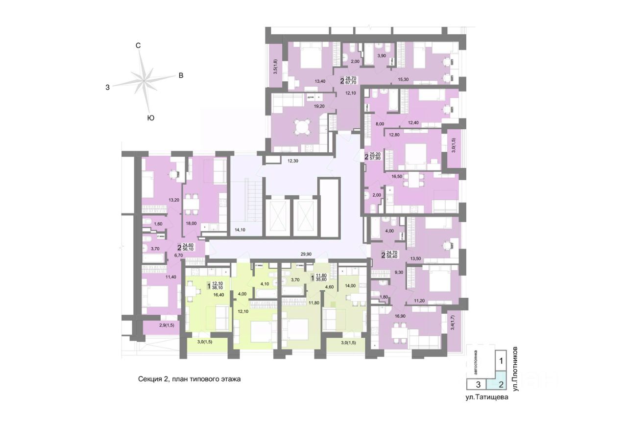 Общая площадь67,4 м2