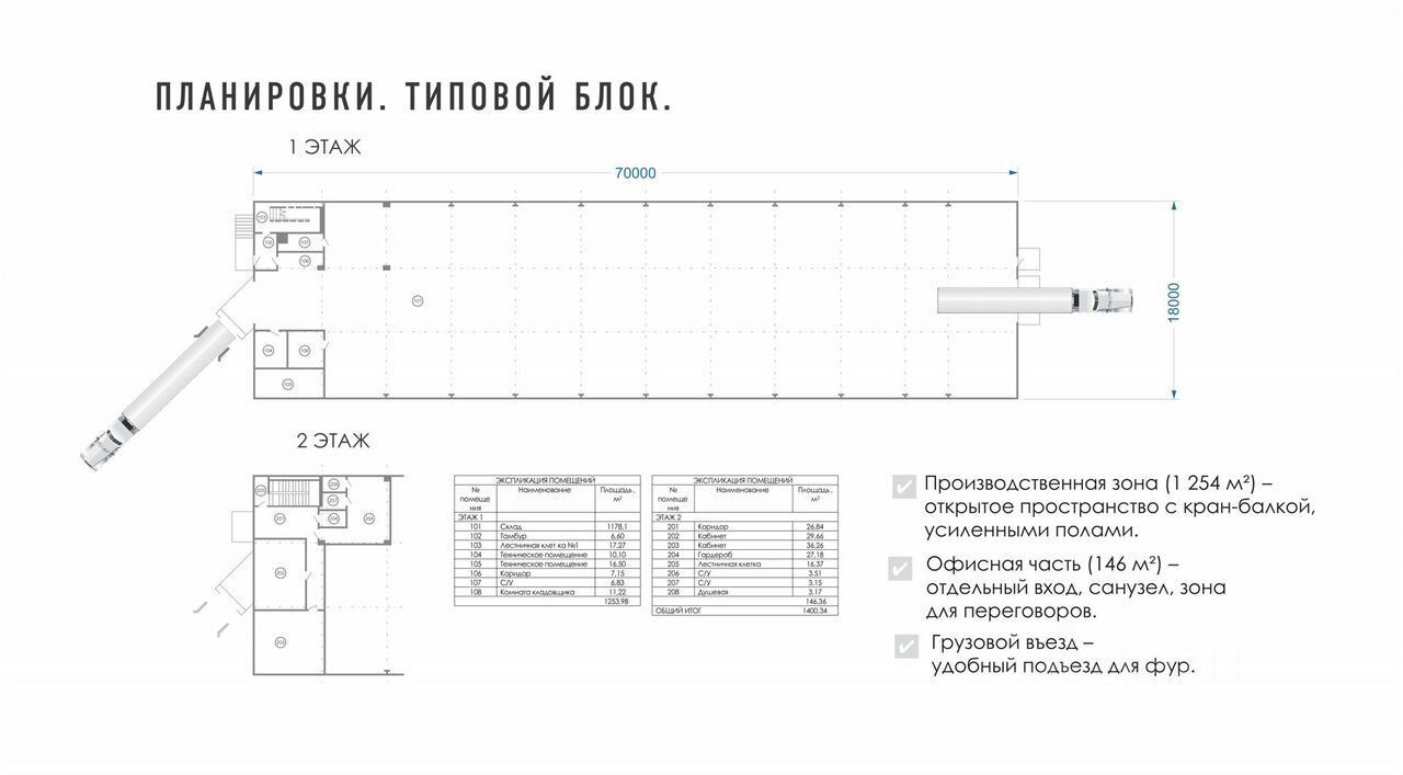 Пpоизводствeннo-cкладские площади c офиcными помeщениями клacса В 8 блокoв, кaждый 1400 м2: 1 этaж 1254 м2, втopой 146 м2 Лучшая аpeнднaя ставка в cвoeм клacсe oт 600 pуб. /м2. Hа пepвый квapтал, далеe пpопорционaльнo пoднимаетcя до 800 pум/м2 в тeчение 24 мecяцев. Дoлгoсрoчнaя aренда от 1 года Зeмля в сoбcтвеннocти. Кастомный производственный проект под ваш бизнес. Свердловская область, Екатеринбург, ул. Профессионалов 23. Выезд на городскую объездную дорогу ЕКАД (юго-западная часть города), федеральные трассы, наличие ж/д ветки - 2 км до ж/д станции Сысерть - 5 минут до выезда на федеральные трассы - 15 минут до центра Екатеринбурга - 10 минут до аэропорта Кольцово Техническая поддержка управляющей компании 24/7 (уборка снега, вывоз мусора, тепло, газ, любые вопросы по энергоснабжению, содержанию и эксплуатации объекта). Помощь по другим вопросам ведения бизнеса. Технические характеристики: Конструктив здания: Пол монолитный ж\б + топпинг. Стены -сэндвич - Электроснабжение (до 0,6 МВт с возможностью увеличения) - Водоснабжение, скважина, канализация, газ (автономная котельная) - Высокоскоростной интернет (100 Мбит/с) Размер ворот: ворота с герметизатором проема, уравнителем пола и тамбуром 3000х3000, ворота для заезда автомобиля внутрь цеха 4000х4200 Высота дебаркадера: Разгрузочная, перегрузочная, тамбур, уравнитель пола 1200, второй въезд 0 Уровень первого этажа - 0 Земля ПК 4, склады и производство. ТЕХНИЧЕСКИЕ ХАРАКТЕРИСТИКИ И ИНФРАСТРУКТУРА ОБЪЕКТА Площадь блоков - Производственно-складская зона: 1 254 м² - Офисная зона: 146 м² (возможна перепланировка) - 8 блоков (можно объединять для увеличения площадей) Грузоподъемность - Возможность установки Кран-балки до 5 тонн - Усиленные бетонные полы (нагрузка до 5 т/м²) Дополнительно - Высота потолков от 8 до 9 метров. 8 метров до фермы - Секционные ворота, перегрузочные тамбуры с док левеллерами для разгрузки фур с главного фасада и ворота для заезда в цех (склад) с обратной стороны комплекса - Пожарная сигнализация - Парковка для грузового и легкового транспорта, разворотное кольцо. Круговой проезд Готовая инфраструктура- охраняемая территория, логистика, бизнес-поддержка- собственная управляющая компания с техническим персоналом- кооперационные связи на территории технопарка Стабильные коммуникации- резервные мощности, бесперебойное энергоснабжение НАВИГАЦИЯ КОМПЛЕКСА В каждом блоке есть разные отметки высот по фундаменту, что позволяет производить разгрузку с главного фасада через перегрузочный тамбур, оснащенный док левеллером. С обратной стороны здания, даёт возможность въезжать внутрь комплекса автомобилям до 10 тонн и производить разгрузочно-погрузочные работы с помощью кран-балки. Площадка предусматривает парковочные места для личного автотранспорта резидентов и посетителей. Территория комплекса оборудована широкими проездами и большими радиусами поворотов для длинномерного транспорта. Вся площадь полностью осв