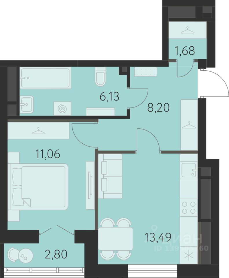 Продается 1-комнатная квартира площадью 41.94 кв.м. от девелопера ''Академический'' в жилом квартале ''Спутник 1''. Срок сдачи дома в 2027 году.