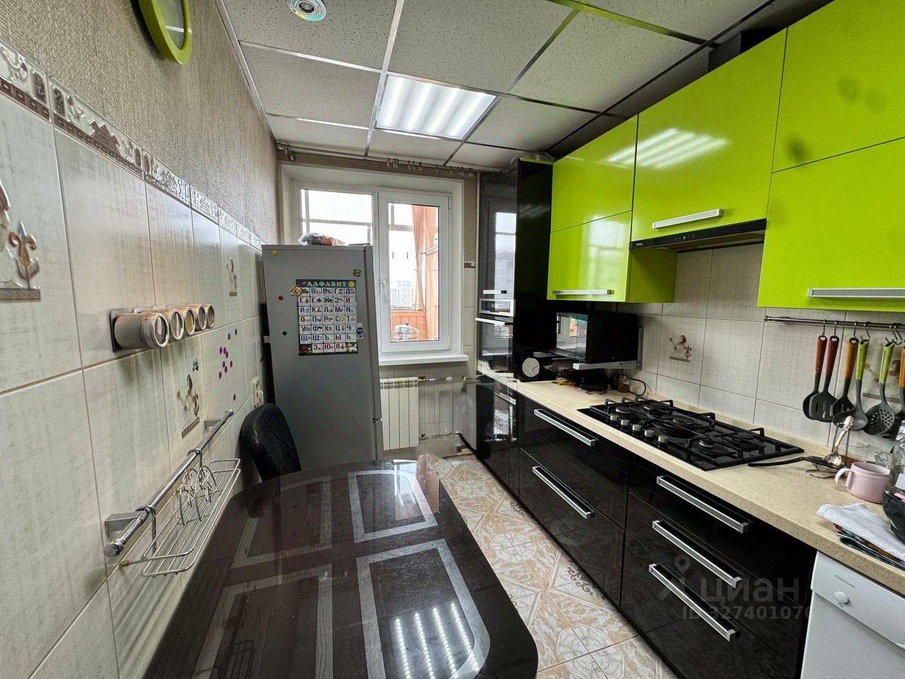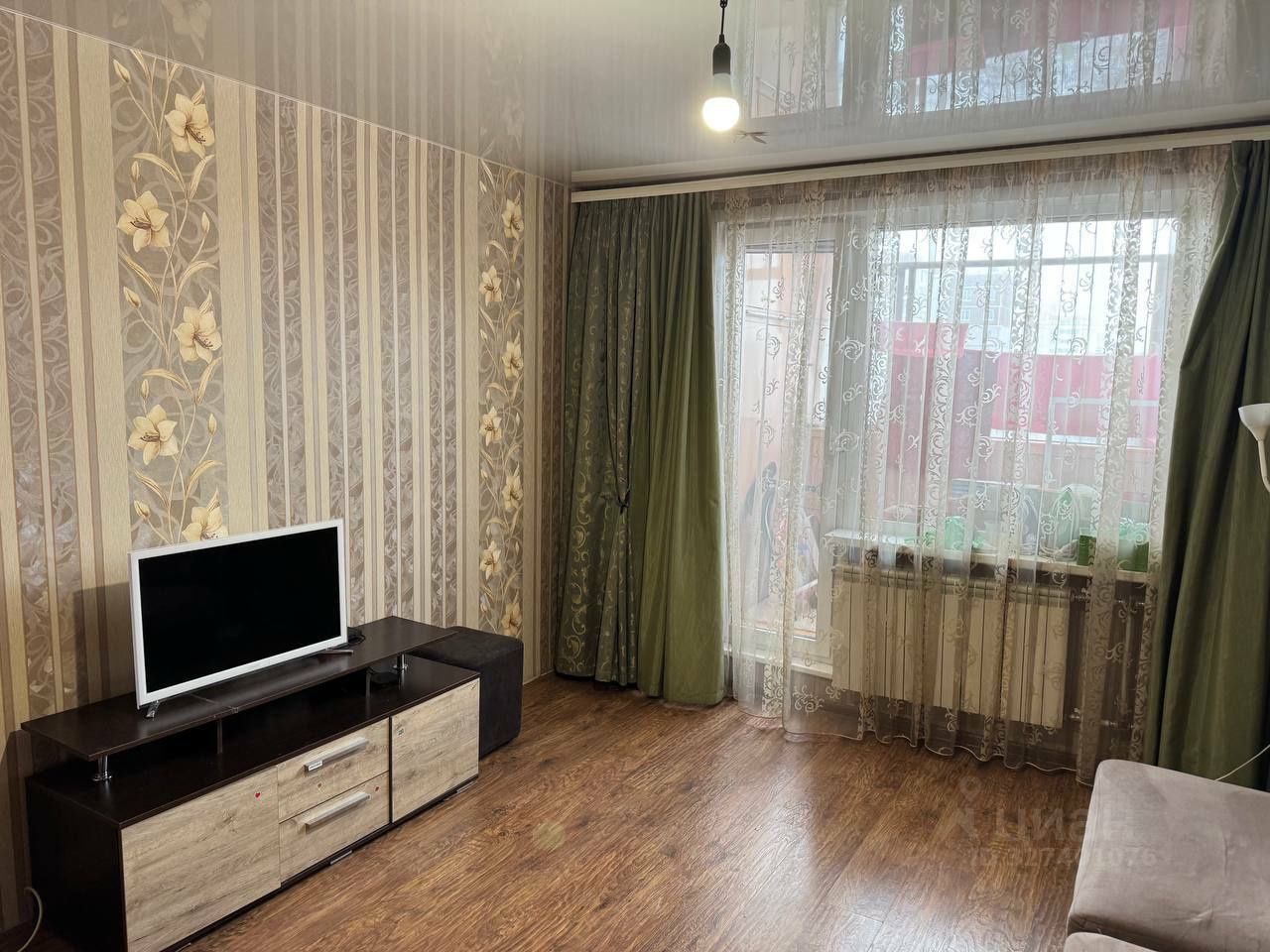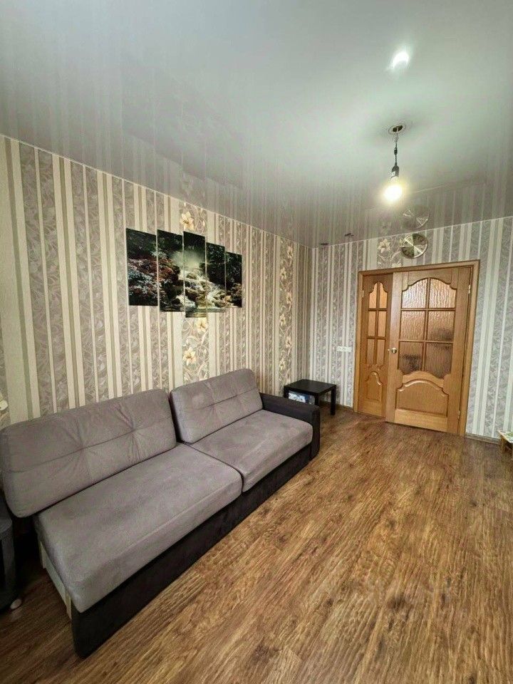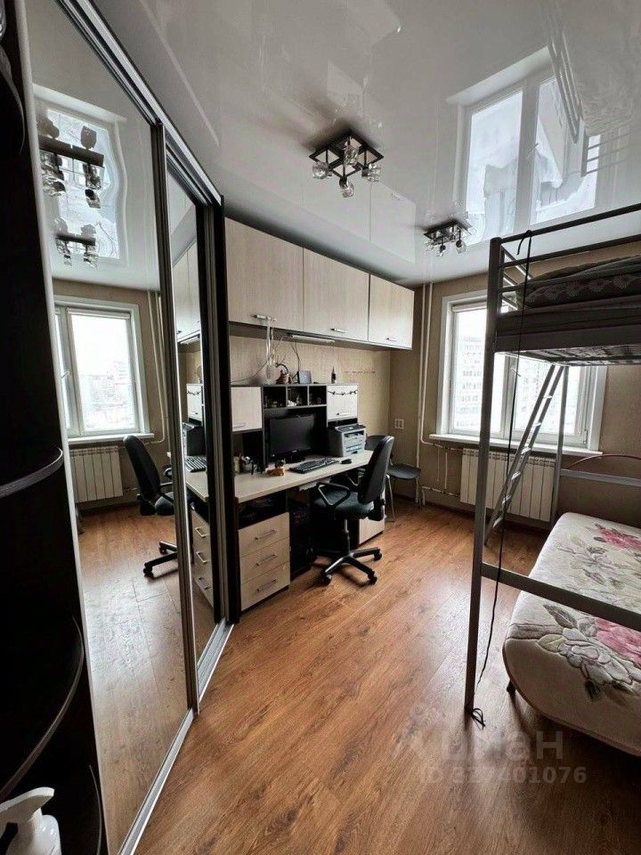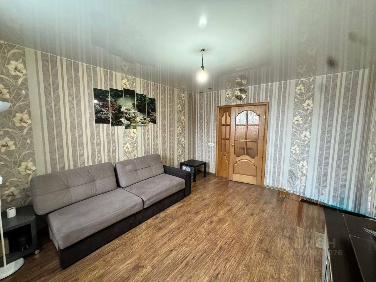 В коридоре на полу плитка керамическая, красивые деревянные межкомнатные двери, натяжные потолки. Есть кладовка, которую можно использовать как гардеробную. Остается большой шкаф-купе в комнате.