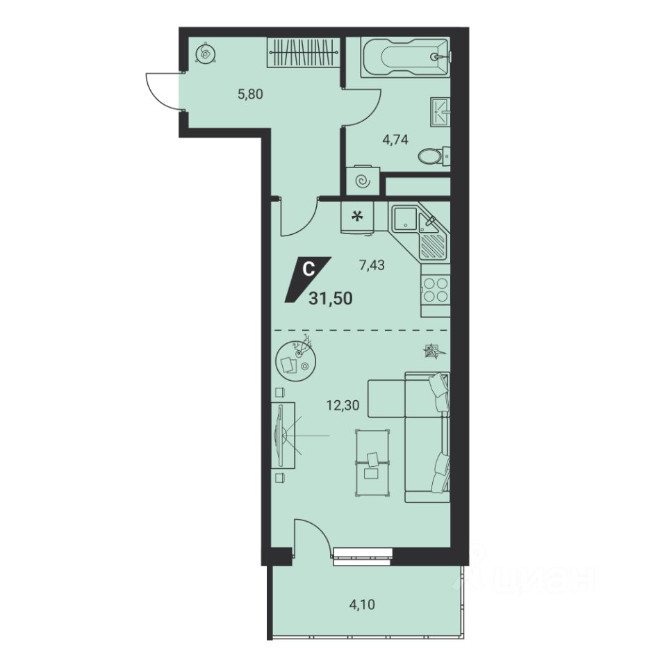 Общая площадь30,7 м2