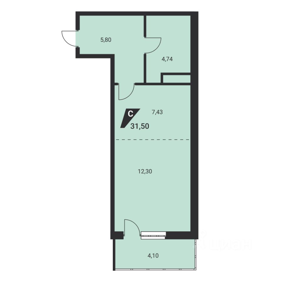 Жилая площадь12,3 м2