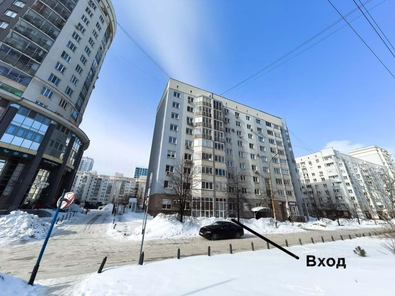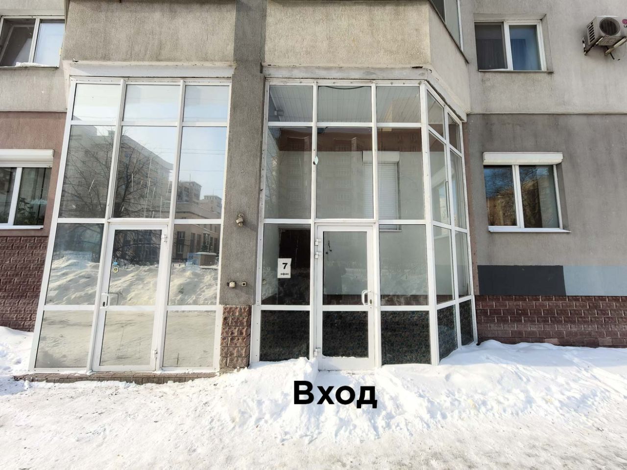 На стеклянном витраже есть место для размещения большой вывески.
