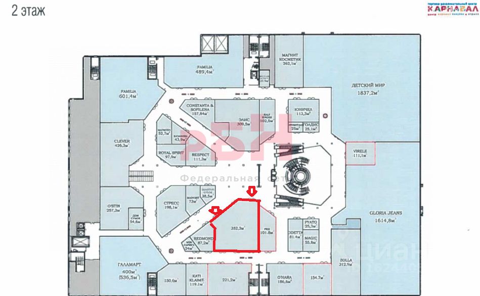 Предлагается в аренду торговое помещение общей площадью 352. 3 кв. м. , расположенного в ТРЦ Карнавал на втором этаже.