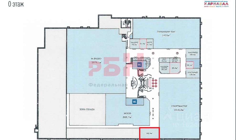 Предлагается в аренду торговое помещение общей площадью 160, 9 кв. м. , расположенного в ТРЦ Карнавал на нулевом этаже.
