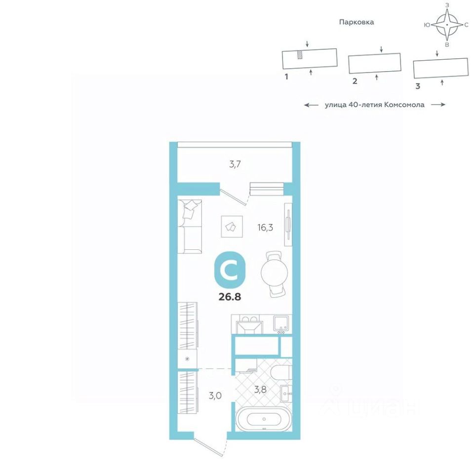 Эргономичная квартира-студия с лоджией и перспективой роста в цене — отличный выбор для тех, кто делает первые шаги к самостоятельной жизни. Общая площадь квартиры 26,8 кв.м., и ее умная планировка позволяет создать атмосферу, полностью отражающую ваши стиль и предпочтения.