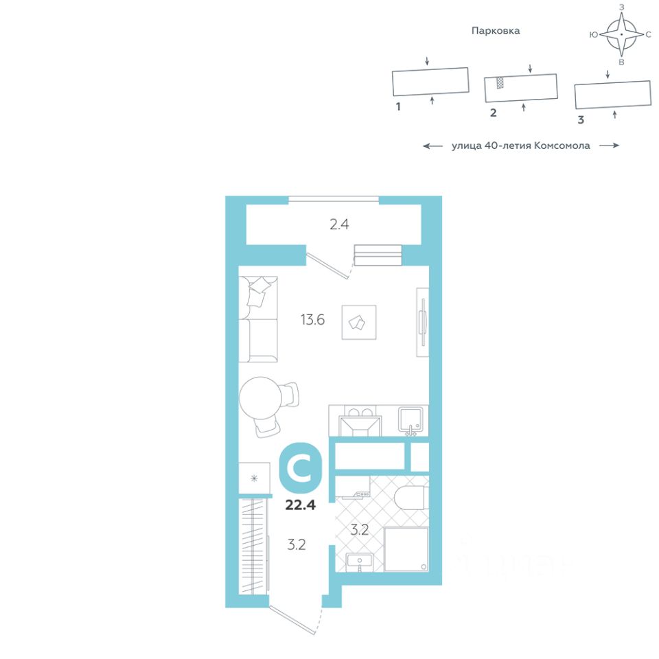 Эргономичная квартира-студия с лоджией и перспективой роста в цене — отличный выбор для тех, кто делает первые шаги к самостоятельной жизни. Общая площадь квартиры 22,4 кв.м., и ее умная планировка позволяет создать атмосферу, полностью отражающую ваши стиль и предпочтения.